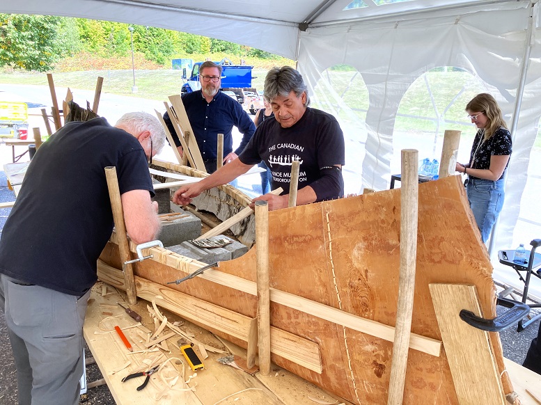 “He teaches so much more than canoe building,” says Conway. “Oh yeah! They can ask him anything about Indigenous culture. He’s so friendly. The beauty of it is it is so organic. It’s really exciting to watch.”