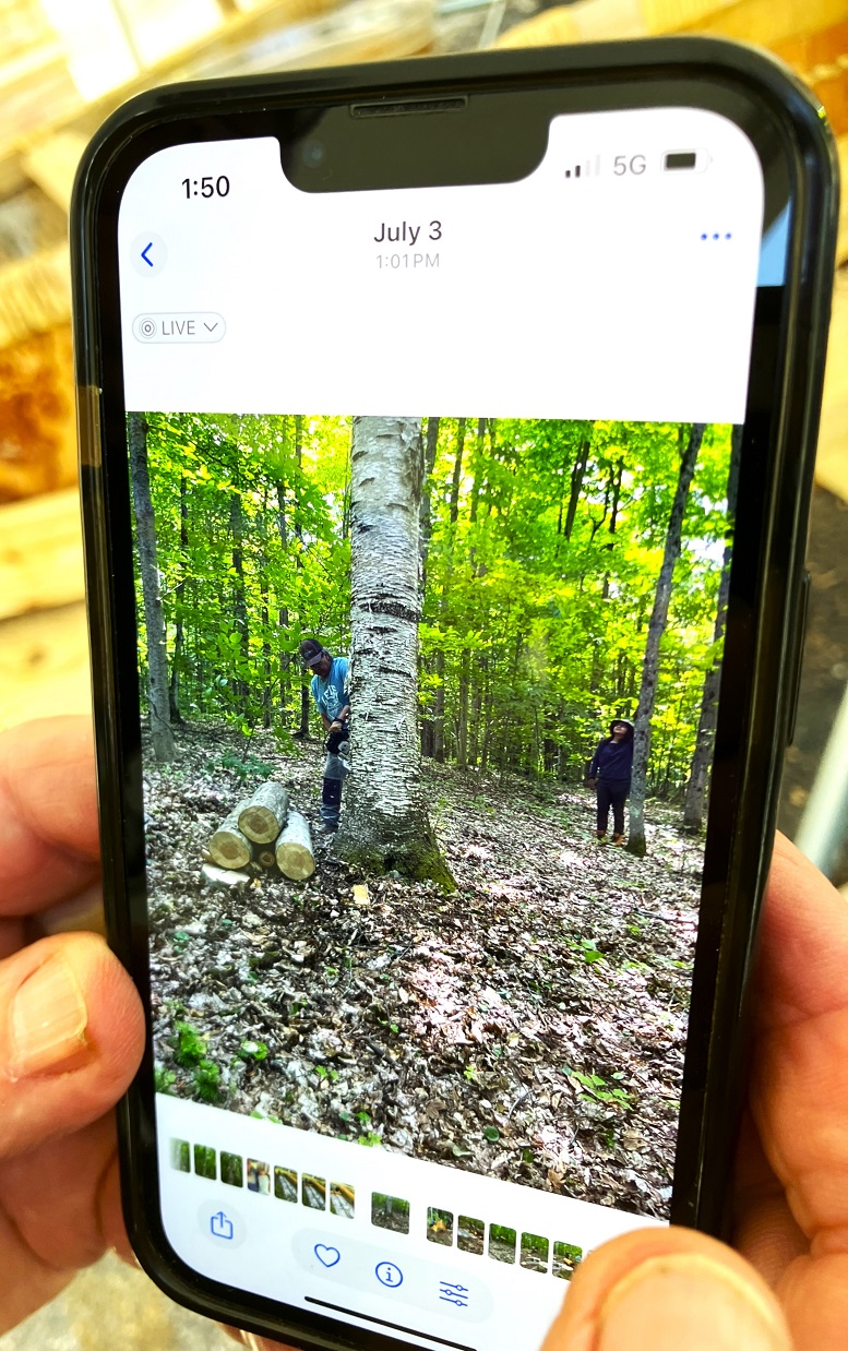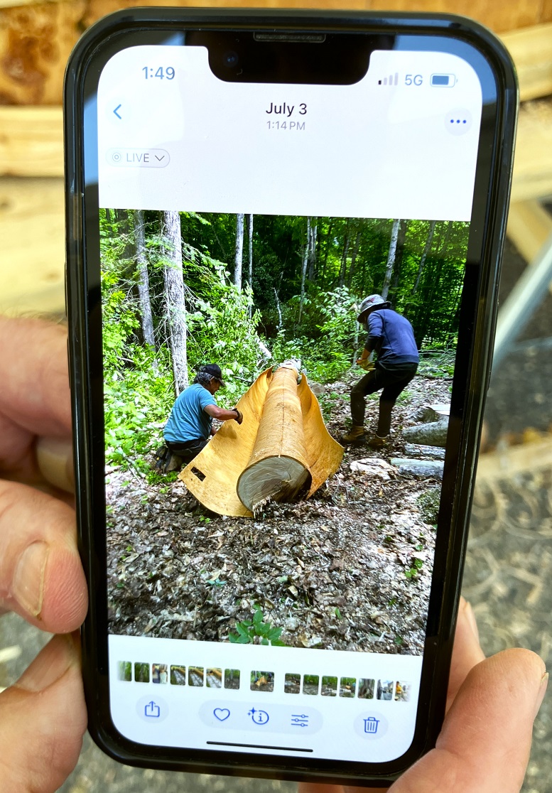 Debarking appeared as simple as a single slice up one side of the 13-foot downed log and peeling it like a fish, shows a smart-phone photo by Connell.