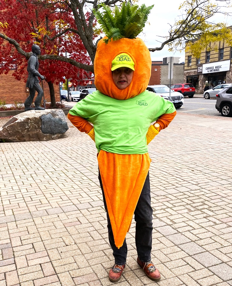 GAP’s carrot-top mascot was on hand Sunday to welcome Farmerette supporters in Heritage Square outside the Opera House.