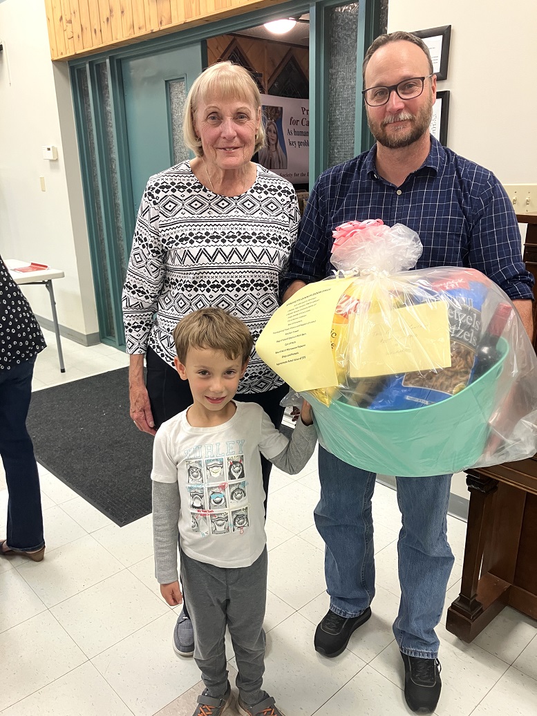 The 7-year-old Bradford boy got a big hug from his grandmother, Sonja, when he pulled her ticket on a winning door prize at the church fundraiser.