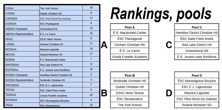 But they, too, face stiff competition in their pool with CWOSSA’s E.S. Macdonald Cartier the tournament’s No. 1 seed.
