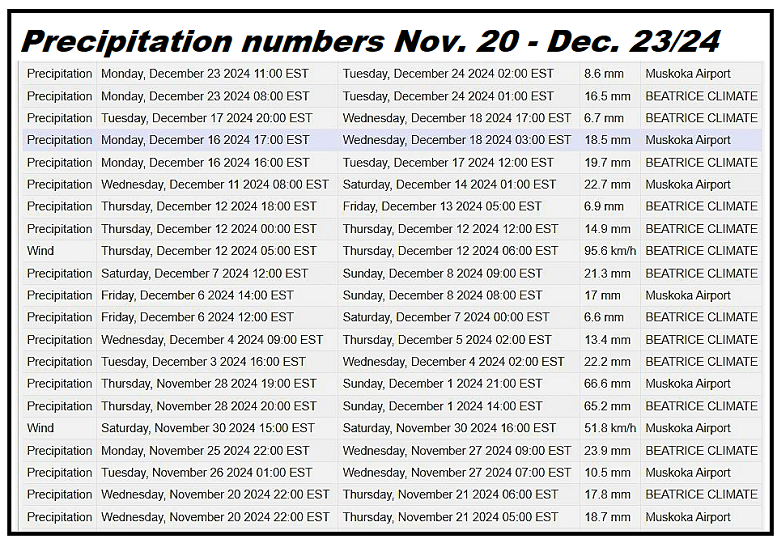 2024 Environment Canada records show precipiation numbers last year between now and week before Christmas.
