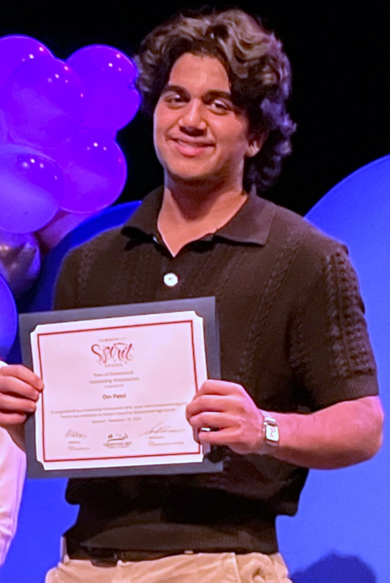 - Om Patel for winning athletics in badminton, volleyball and delivering for GAP;