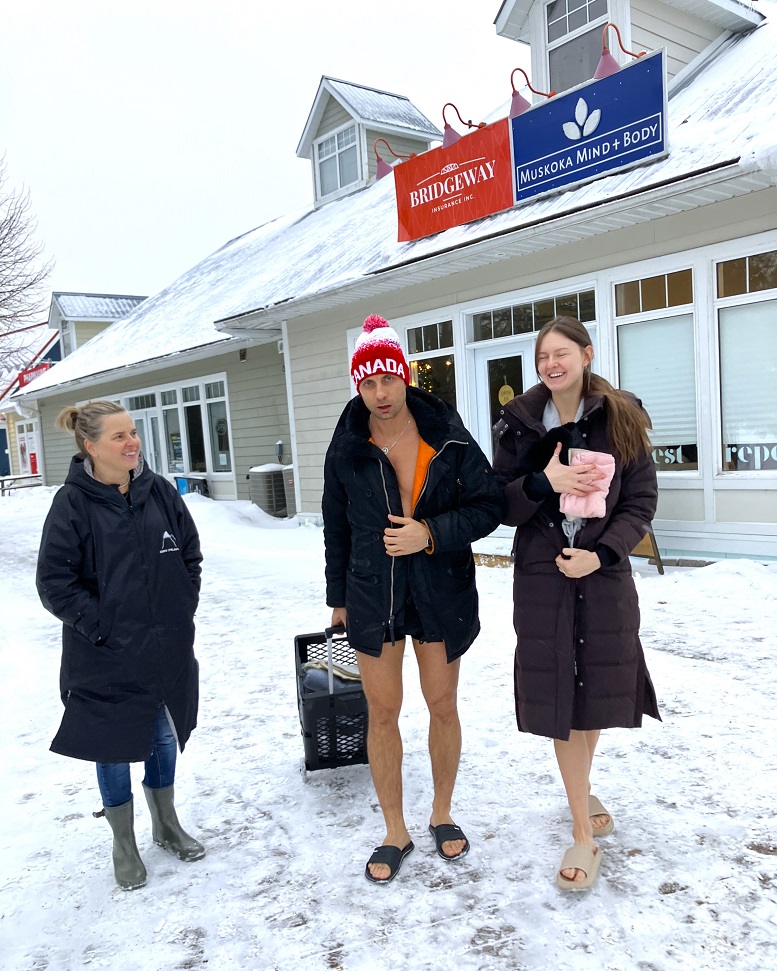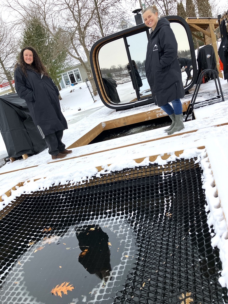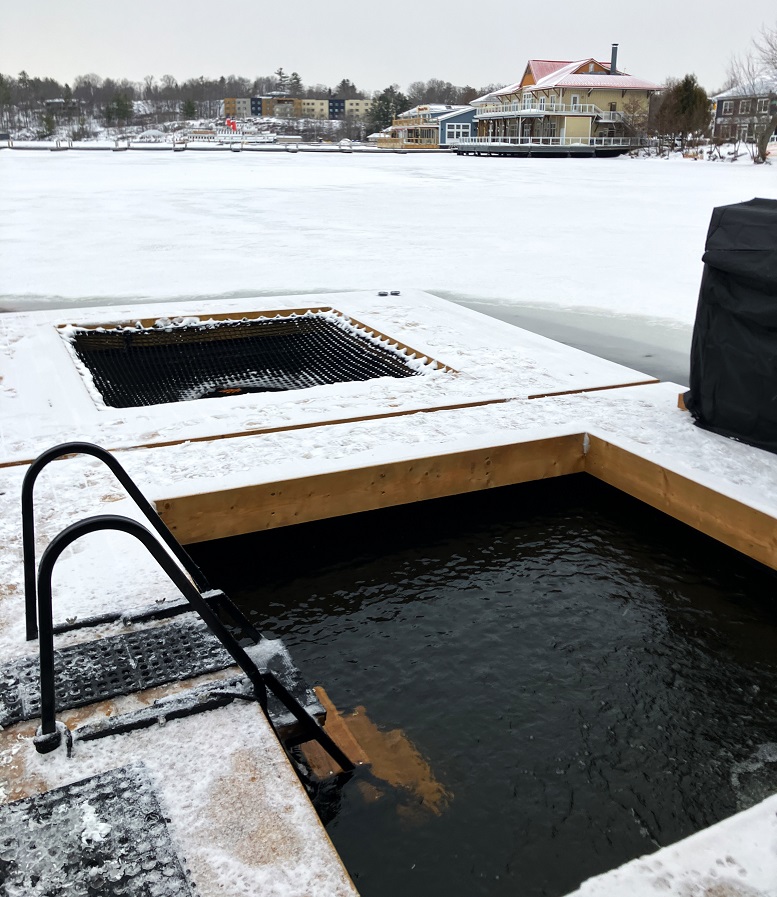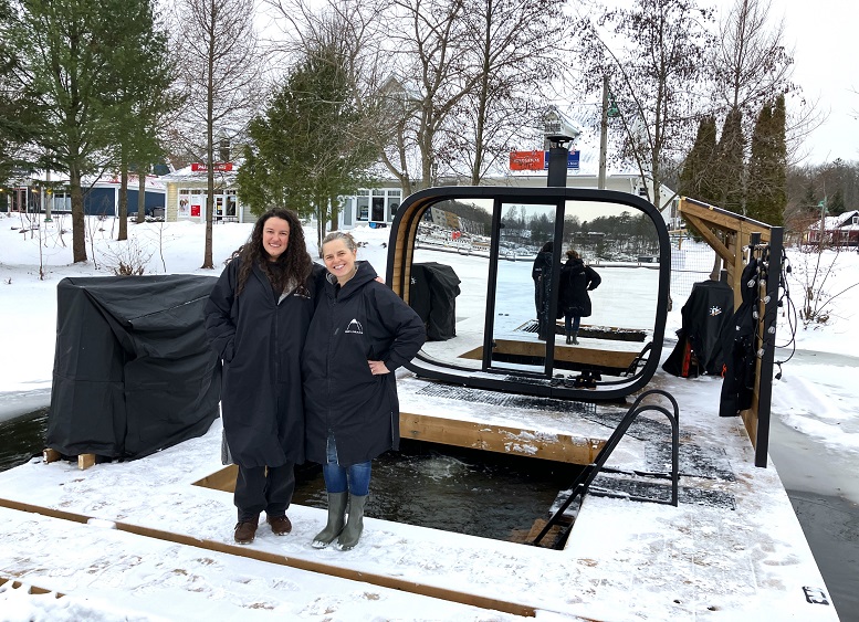 “It’s a fun, casual way to enjoy Lake Muskoka year-round,” Tory Clark said, as couples rotated in and out of the sauna and cold water.