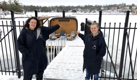 “It’s a fun, casual way to enjoy Lake Muskoka year-round,” Tory Clark said, as couples rotated in and out of the sauna and cold water.