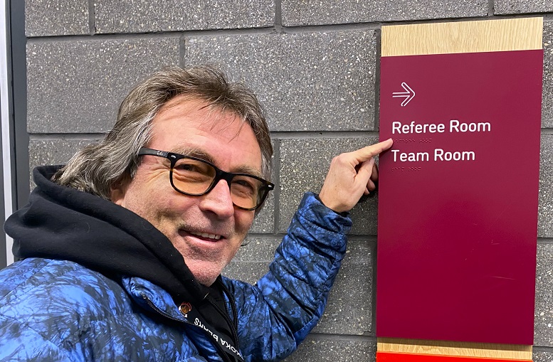 Meanwhile, eagle-eyed realtor Doug Hogarth wonders why there’s Braille telling game officials where their dressing room is.