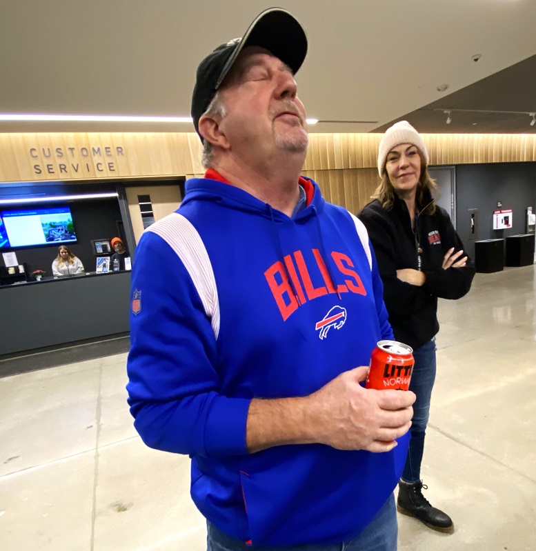 Paul Langdon can only close his eyes and shake his head as Rebecca Penwell looks on after the Bills dropped at least three key Josh Allen balls that may have helped them win last night’s AFC division game in Denver.