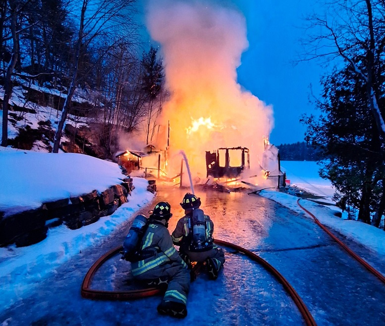 MASSIVE MILLION-DOLLAR COTTAGE FIRE LAST NIGHT DESTROYS COTTAGE ON CLIFF BAY ACROSS FROM FORMER MUSKOKA CENTRE IN GRAVENHURST