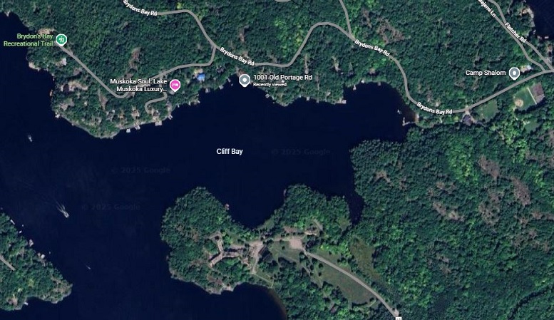 The property is located across Cliff Bay in Gravenhurst from the province’s former Muskoka Cenetre, where a huge condo development is proposed. PHOTO Google Images
