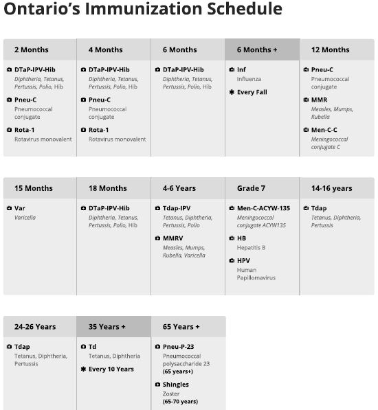 For more information about routine and required vaccines given to students and the diseases they prevent, please visit smdhu.org or call the health unit at 705-721-7520 ext.8827.