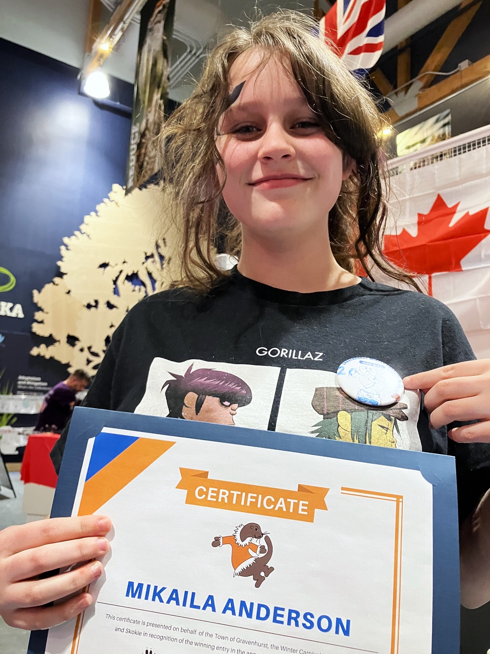 Mikaila Anderson, who designed this year’s Winter Carnival button, received a gift certificate for her efforts.