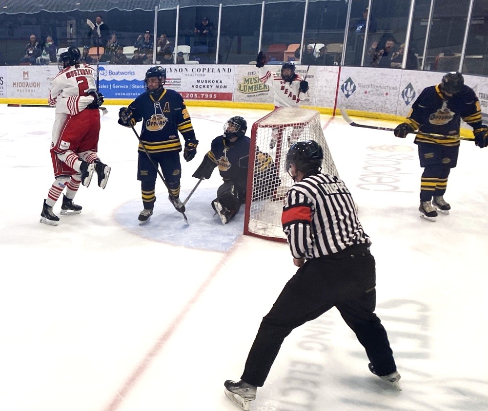 But it was the Bears who won the day on four third period goals, two of them short-handed and a pair by William Muszynski — including his empty netter at 18:41 — which now sees Muskoka moving on to Orillia in the playoffs to start no later than this Saturday.
