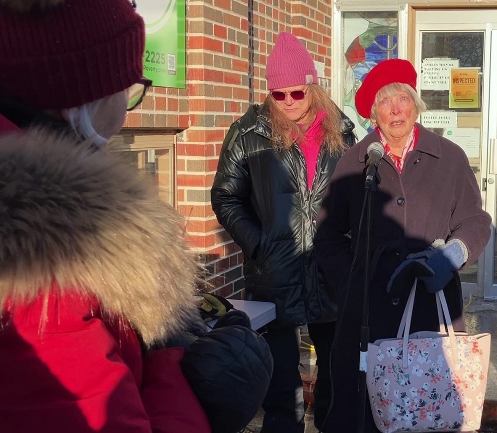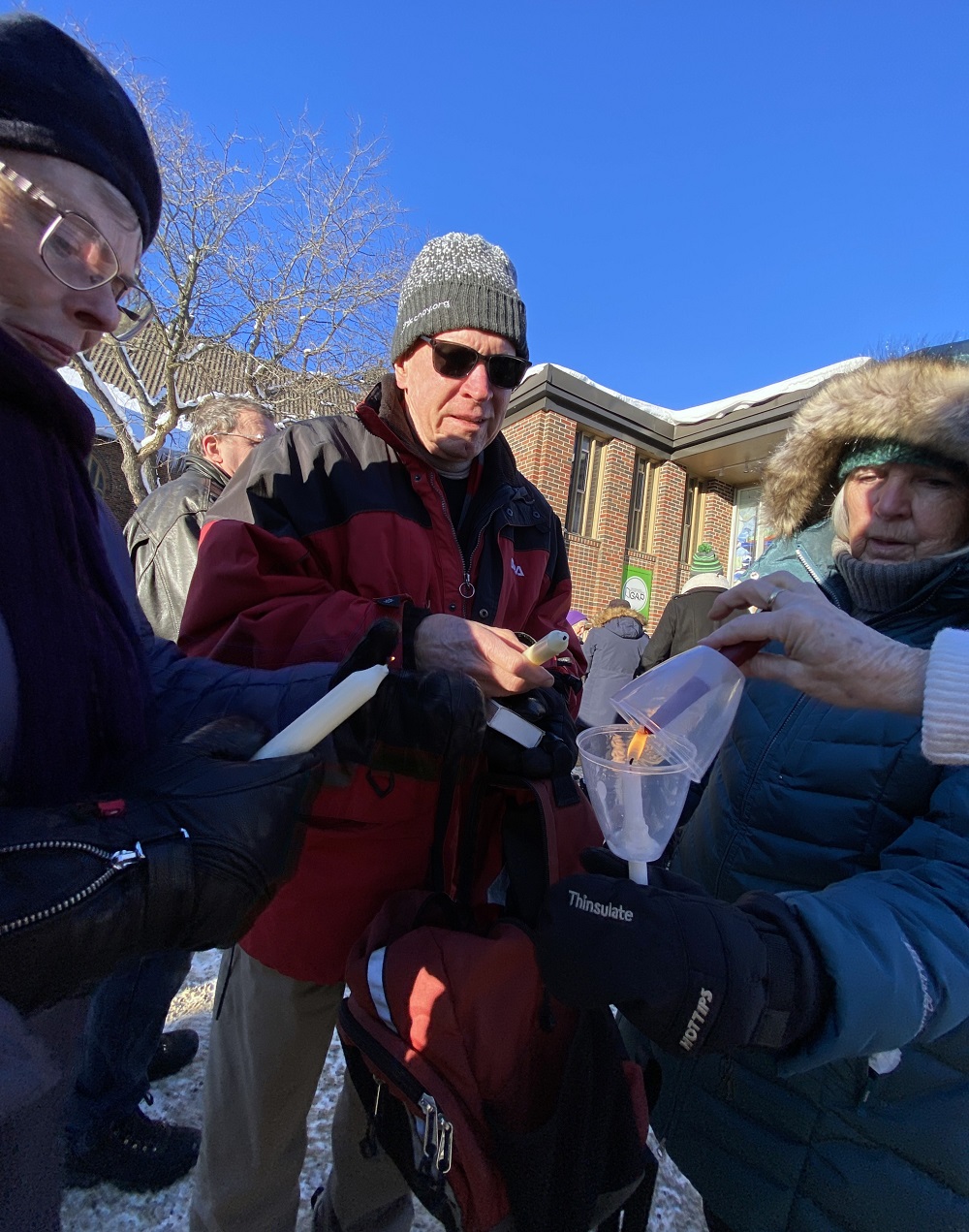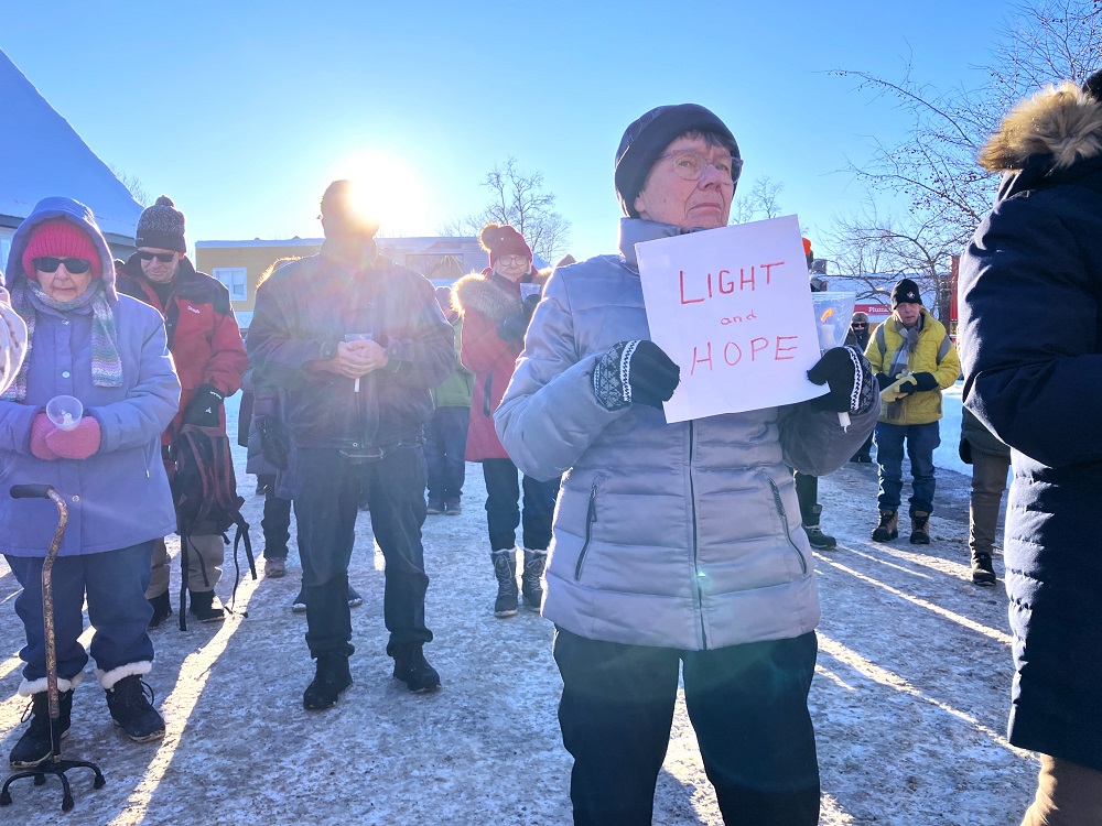 Pastor Carl-Ann Chapman offered warm words of peace, hope and love on a minus-6-degree afternoon, as bright sun shone in her face while bundled-up supporters lit candles and listened to the names of the most recent victims Renée Nicole Macklin Good and Alex Pretti others were read out.