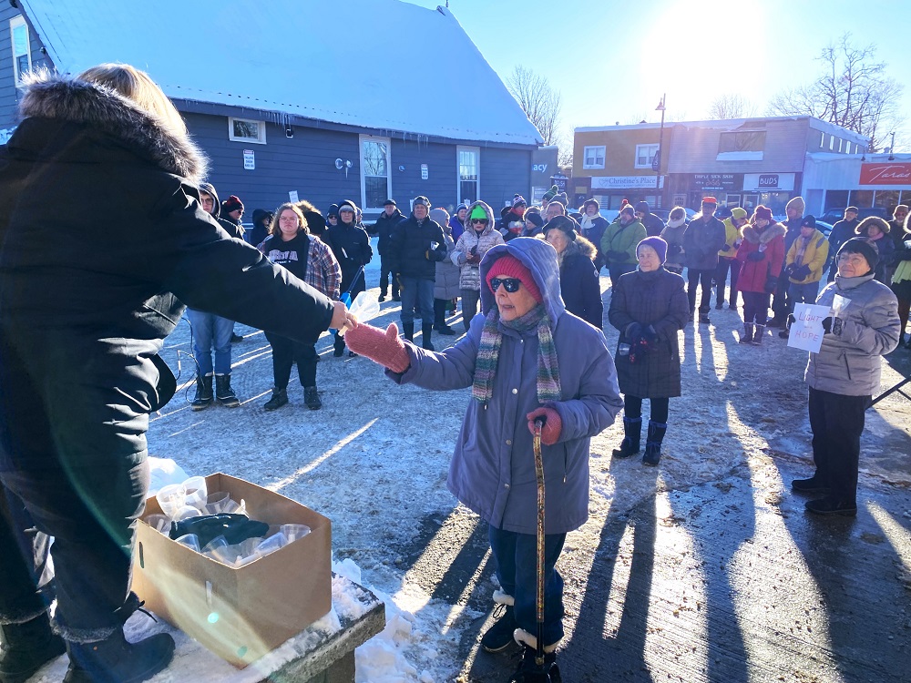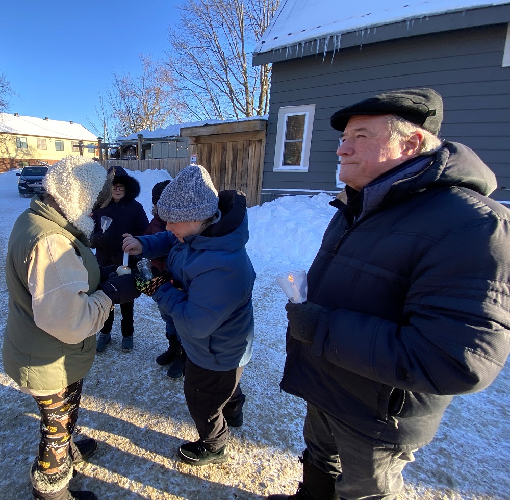 She was one of about 50 people who attended this afternoon’s candlelight peace vigil at Trinity United Church in solidarity of those killed last month by American government ICE officials.