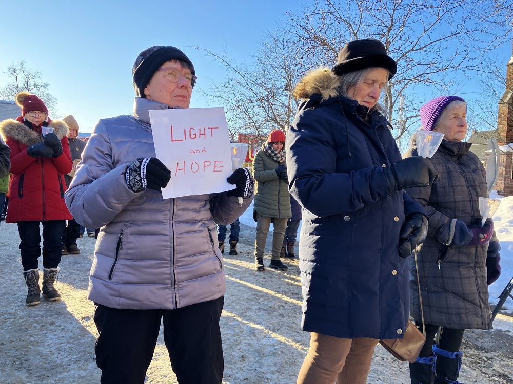 She was one of about 50 people who attended this afternoon’s candlelight peace vigil at Trinity United Church in solidarity of those killed last month by American government ICE officials.