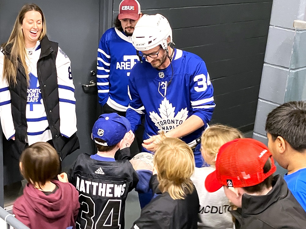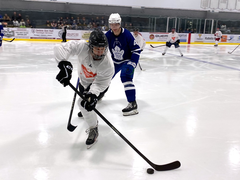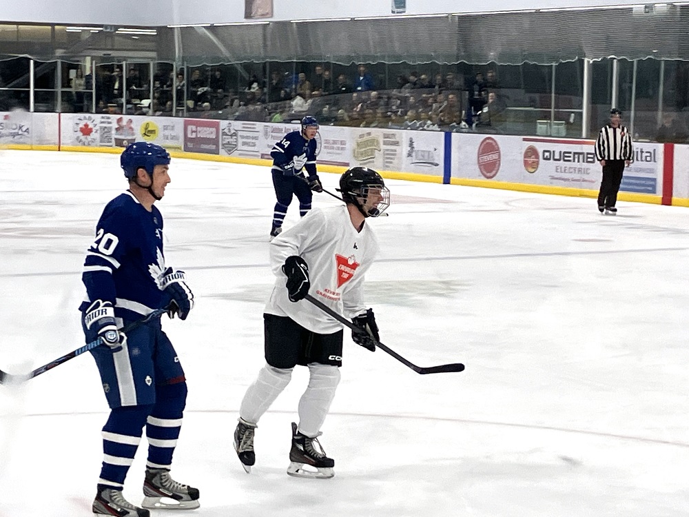 Even the Leafs opponents in the white CTC jerseys — who paid $300 to suit up against them had to admit to enjoying the fundraiser — said a sweaty Chris “Bondo” Bonden during and after the game.