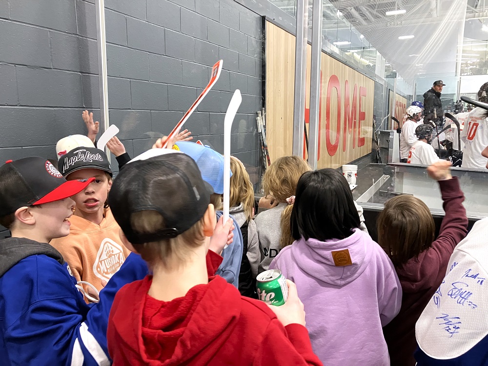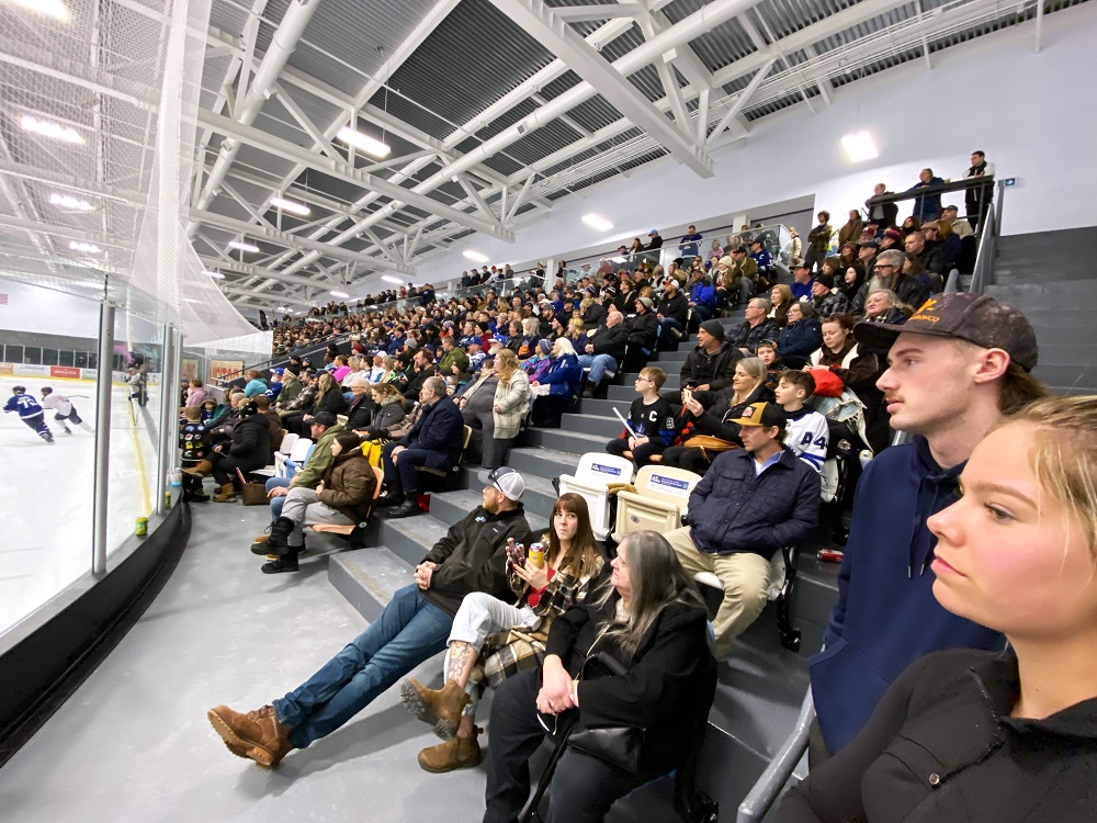 Certain to become an annual winter event with 900 sold-out seats and 100 standing. It was the largest crowd to see hockey in the new two-year-old Muskoka Lumber Community Centre.