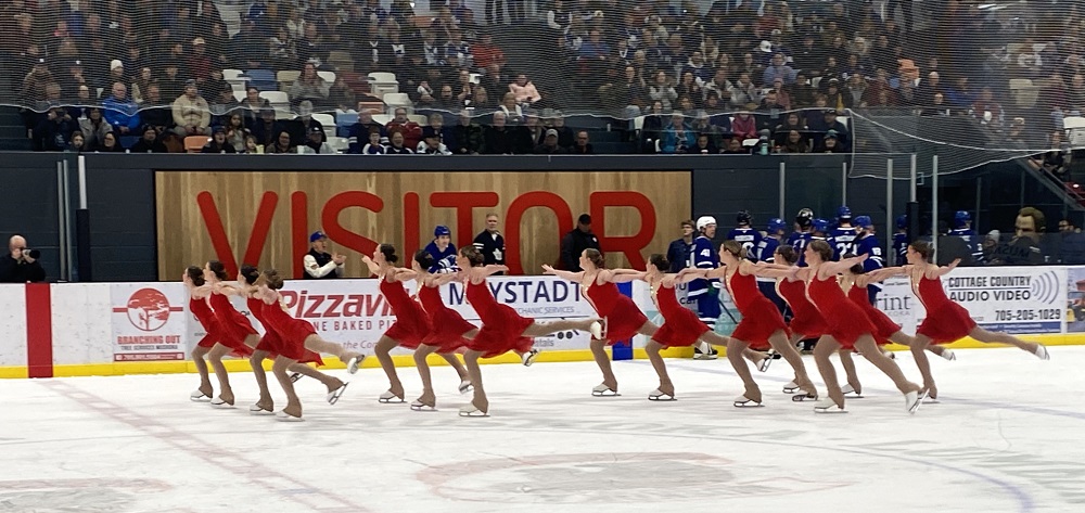 During the flooding the Port Carling Figure Skating Club’s synchro team showed the men how to skate.