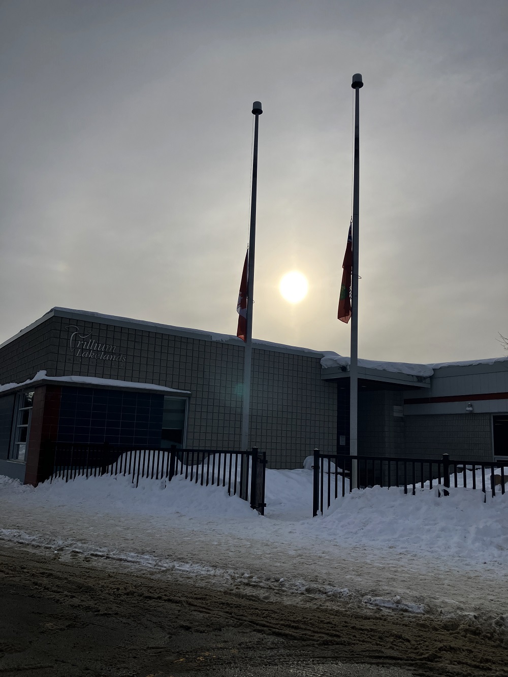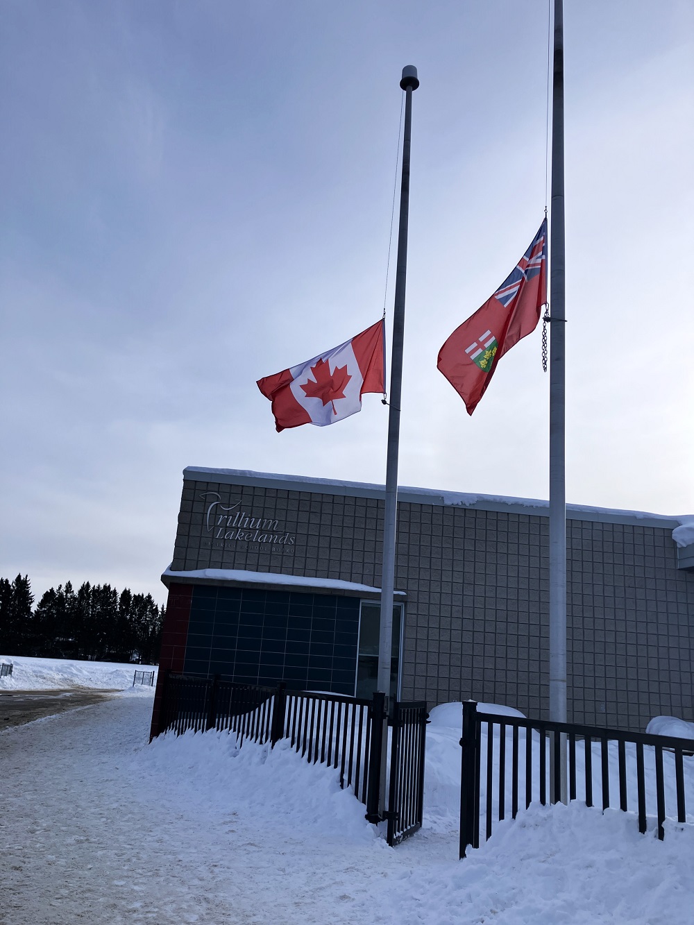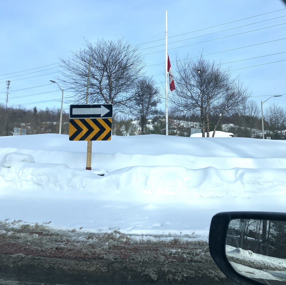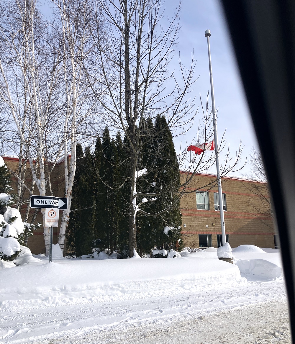 From the roundabout on Taylor Road and just down Cedar Lane at St. Dominic’s Catholic high school and the nearby OPP detachment, flags either flapped in the wind at time or hung like heads bowing in memory of those who killed in B.C. Tuesday.
