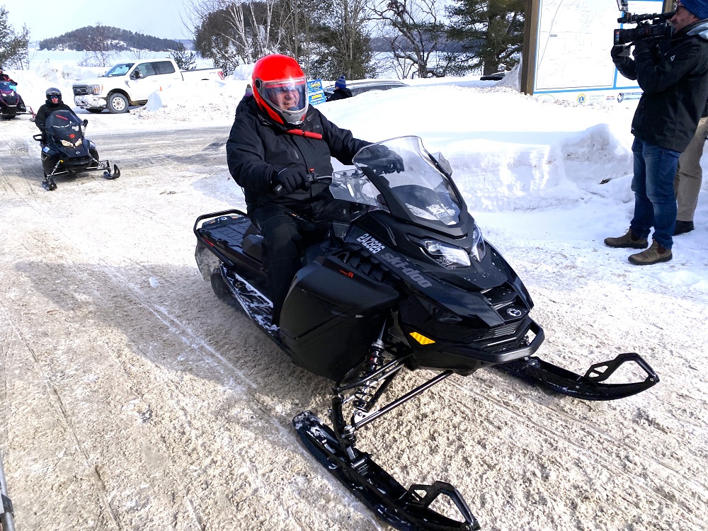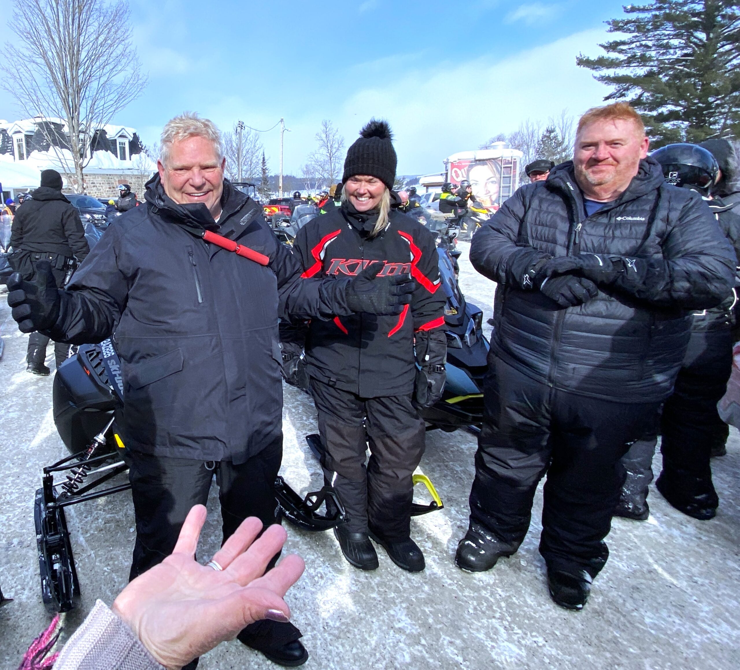 Ford was mobbed as he got off his sleek black Ski-Doo after leading a couple dozen riders across Mary Lake, including fellow sledders MPPs Graydon Smith and Simcoe North’s Jill Dunlop. Along with 10 Ontario Federation of Snowmobile Club district presidents on the cold, slow, smooth half hour trip ridden on twice freshly groomed trails Thursday and Friday.