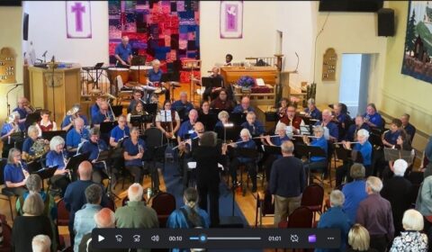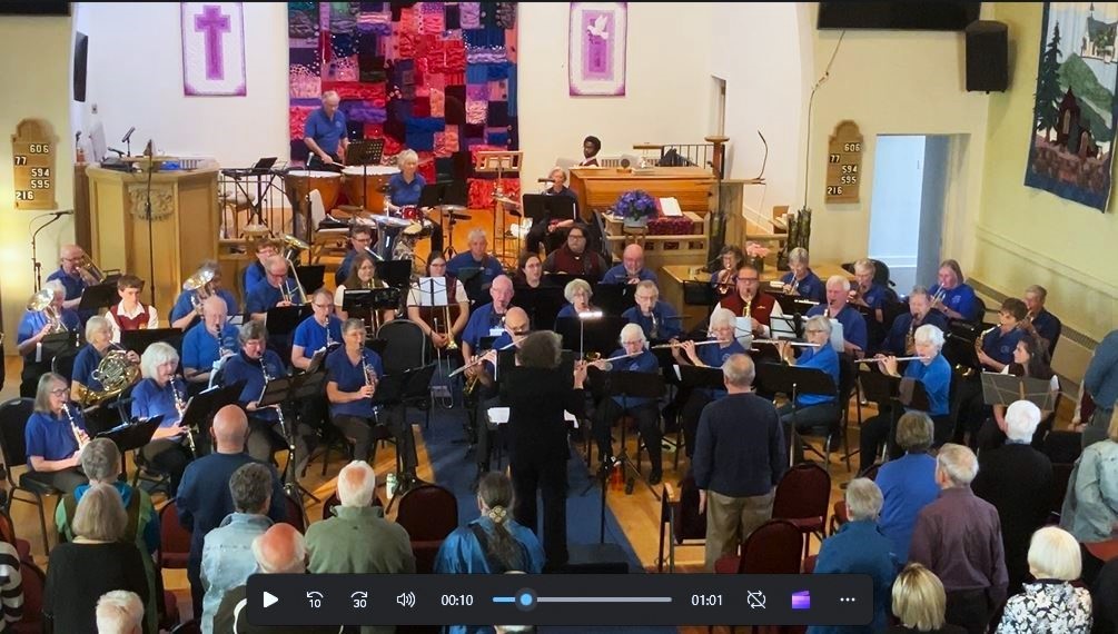 To finish the program the band presents their very own Inge Fritz, 94, playing percussion in the body-swaying, toe-tapping “More Cowbell.”