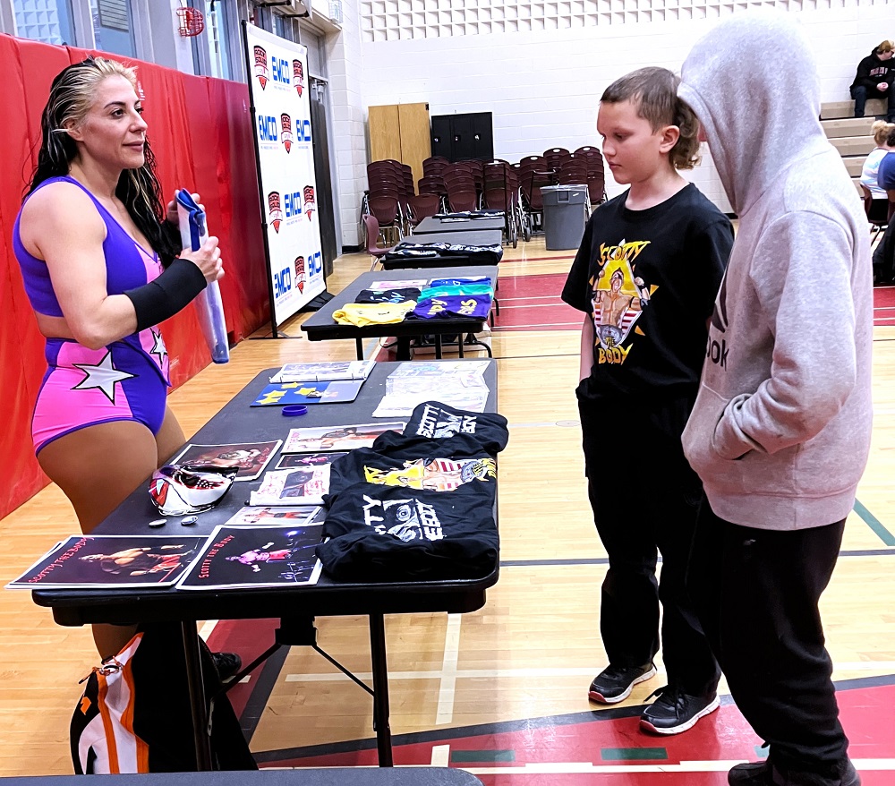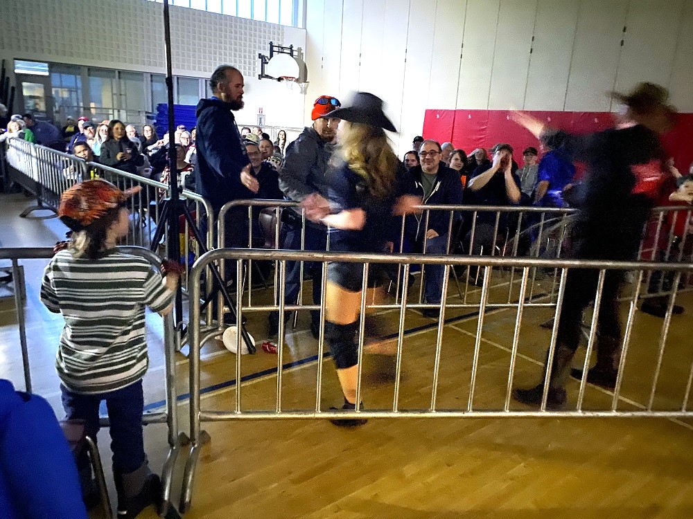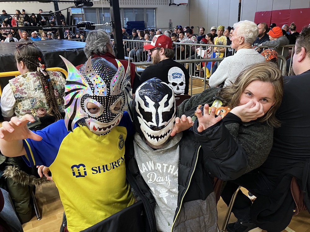 Had the house lights not been off as to prevent excited audience members — kids, moms, dads, teens and SMCL family members — to more clearly see through the façade shrouding each grapple and grasp within the ropes, the theatrics would have been more entertaining.