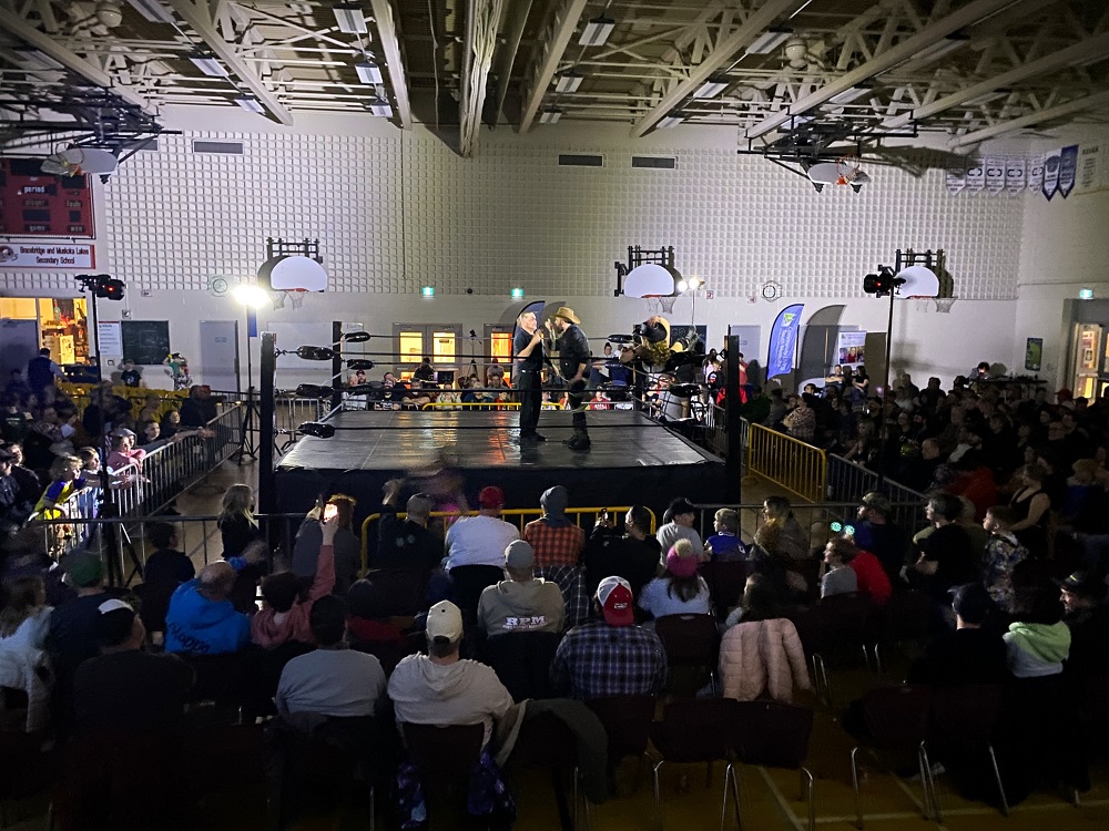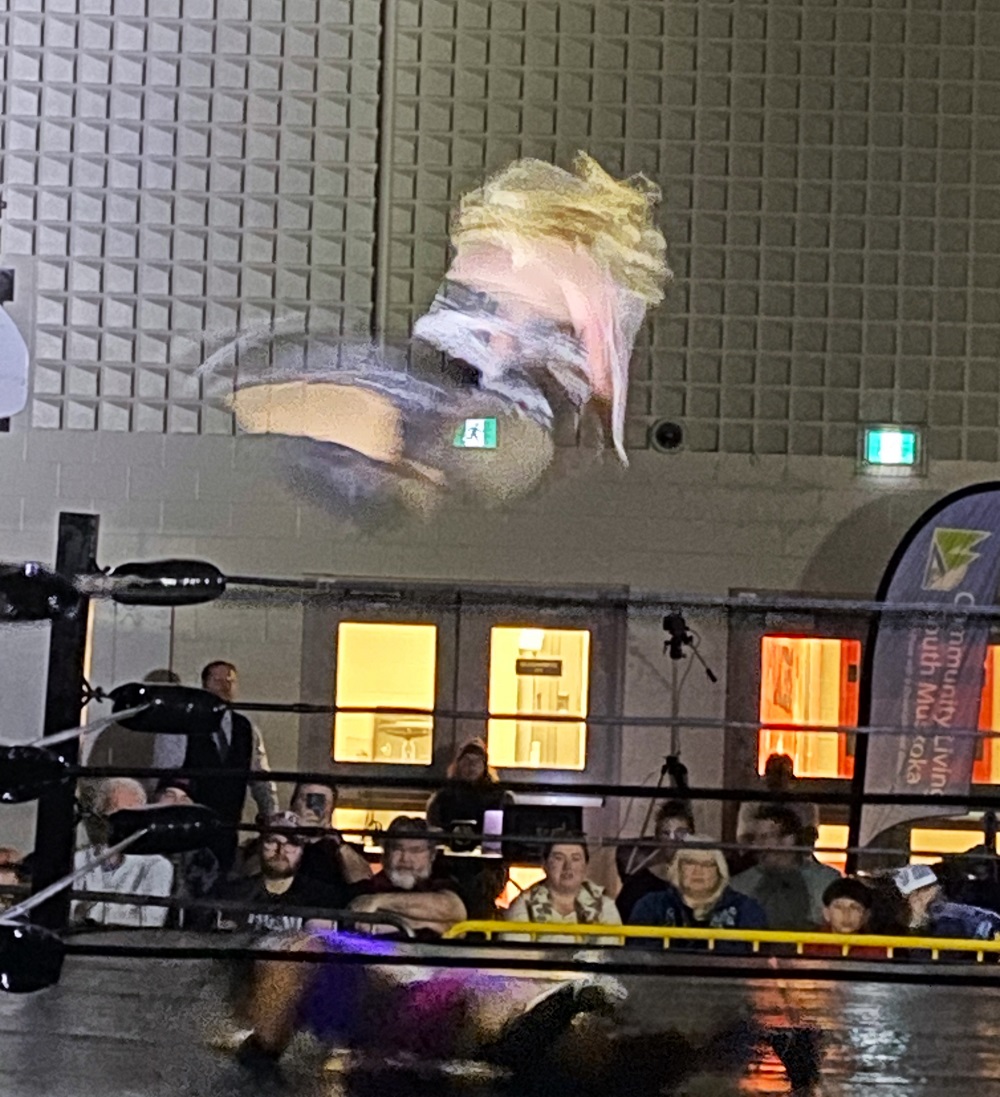 Far from the star-crossed lovers, the Big Trouble in Bracebridge was the dramatic, grappling sounds echoing off the walls from the entanglement of pro wrestlers pounding and thudding on the plastic canvas.