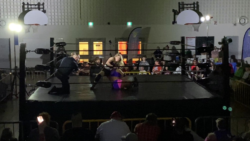 Then it was KC Spinelli showing newcomer Sidney West the ropes in a spirited women’s four-corner match.