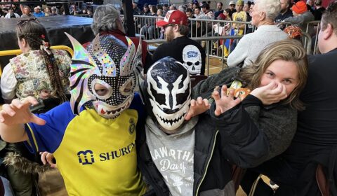 Had the house lights not been off as to prevent excited audience members — kids, moms, dads, teens and SMCL family members — to more clearly see through the façade shrouding each grapple and grasp within the ropes, the theatrics would have been more entertaining.