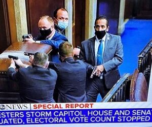 Mark Clairmont | MuskokaTODAY.com WASHINGTON — Chilling images of what appears unarguably to be an “insurrection” at the seat of the American government is best crystallized in one dramatic photo this afternoon of masked armed guards aiming their handguns at a blockaded door at the U.S. Capitol chamber. Vice President-elect Joe Biden just called the […]